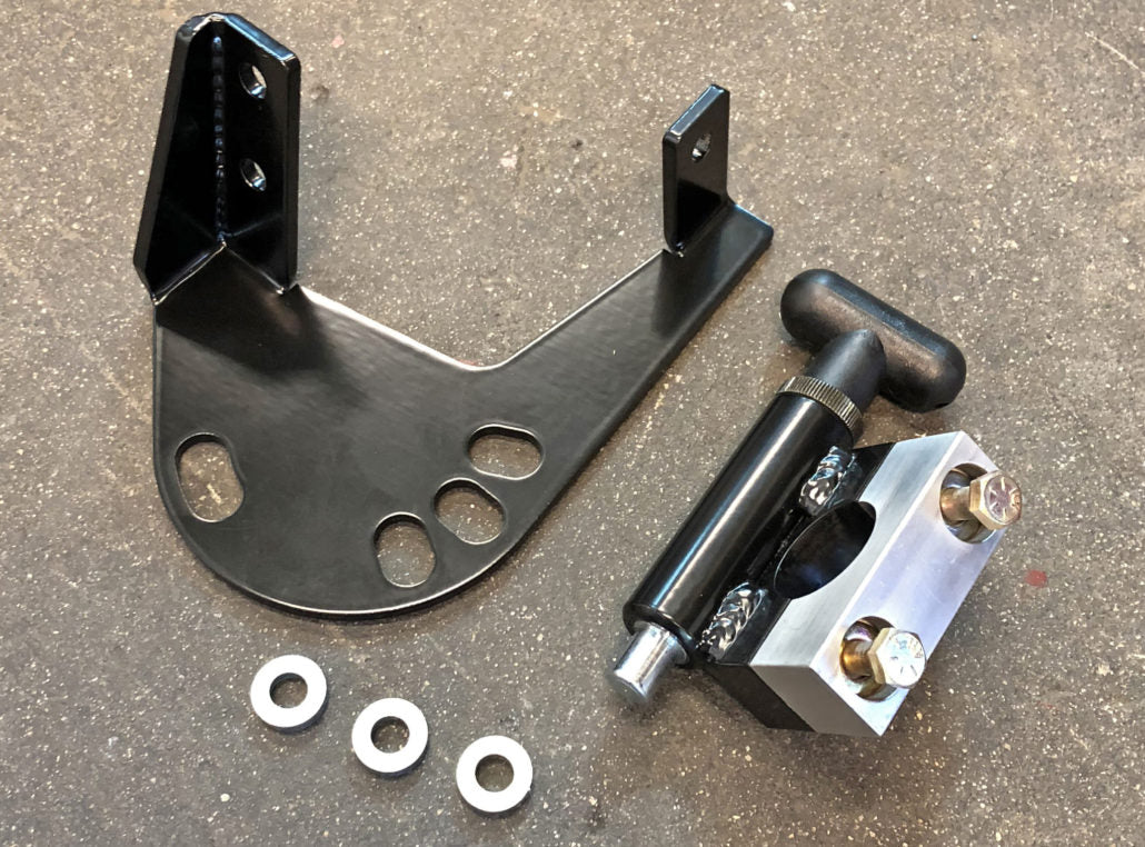 The Spare Tire Carrier Swing Stop will prevent your Bronco’s spare tire carrier to swing open into your tailgate. Solo's bolt-on Spare Tire Swing Stop is just what you need when you want your spare tire swing to stay put! Using a spring-loaded pull-pin to lock in place is automatically done.